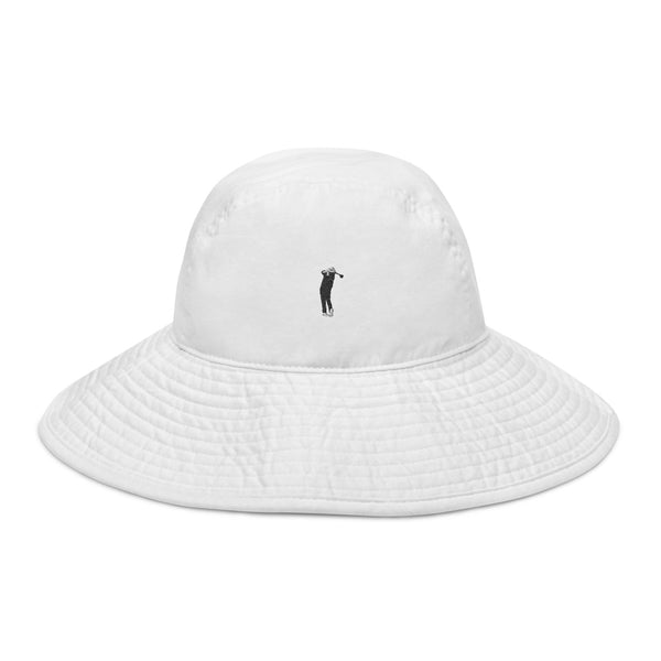 be golf guy. It's time to upgrade your hat collection with this wide brim bucket hat! It's a gorgeous accessory that'll shield your eyes from the sun with its 4″ wide floppy brim.