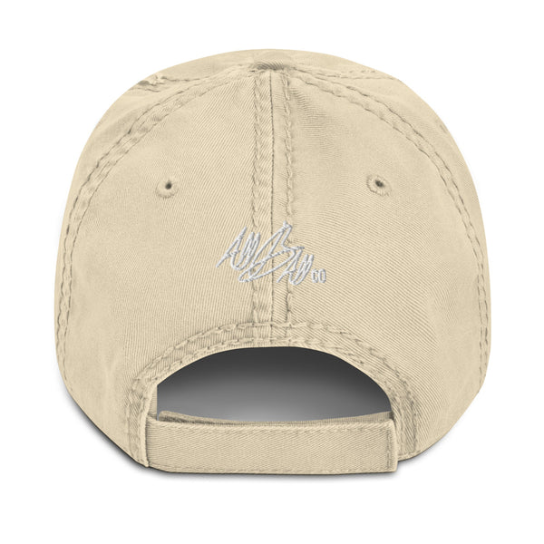 Expand your headwear collection with this fashionable dad hat. With a slightly distressed brim and crown fabric, it’ll add just the right amount of edge to your look. For a quick and easy outfit pair it with slacks, your favorite jeans, and a sports tee.